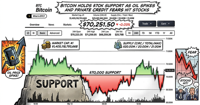 Bitcoin is currently acting as a shock absorber for risk-on portfolios, maintaining its $70,000 psychological floor even as geopolitical instability in the Middle East sends crude oil soaring toward $100 per barrel. While traditional equities are reeling from a combination of energy-driven inflation fears and a widening liquidity crunch in the private credit sector, BTC is proving its resilience as a non-correlated hedge.
